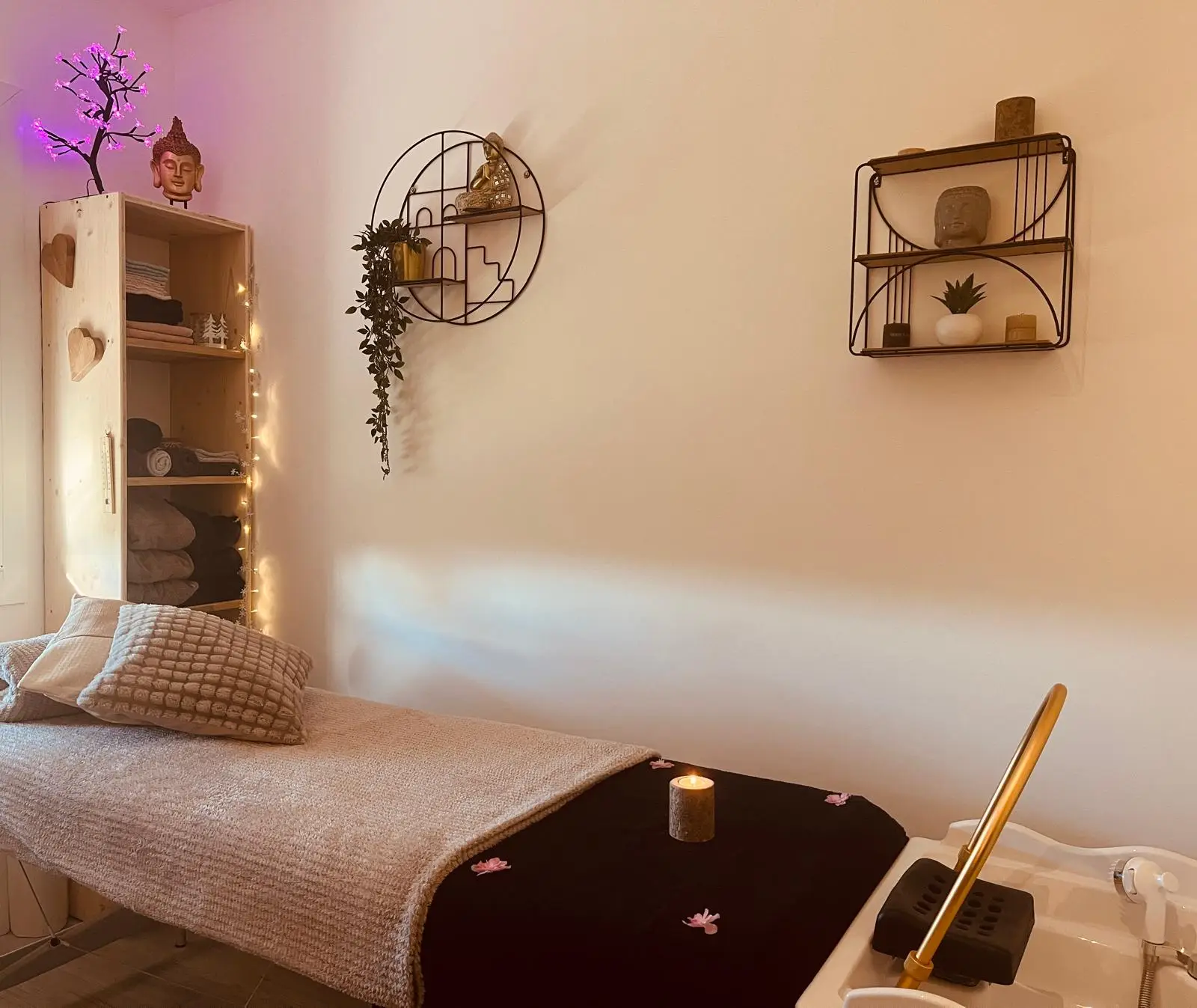 Je vous accueille dans un espace entièrement dédié à la détente, aménagé au sein de mon domicile : un cocon lumineux, calme, entouré de verdure, conçu pour vous offrir une expérience de relaxation profonde et une véritable reconnexion à vous-même.